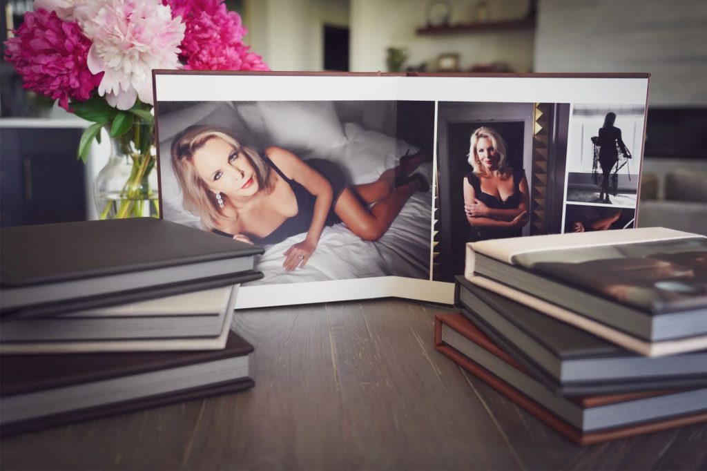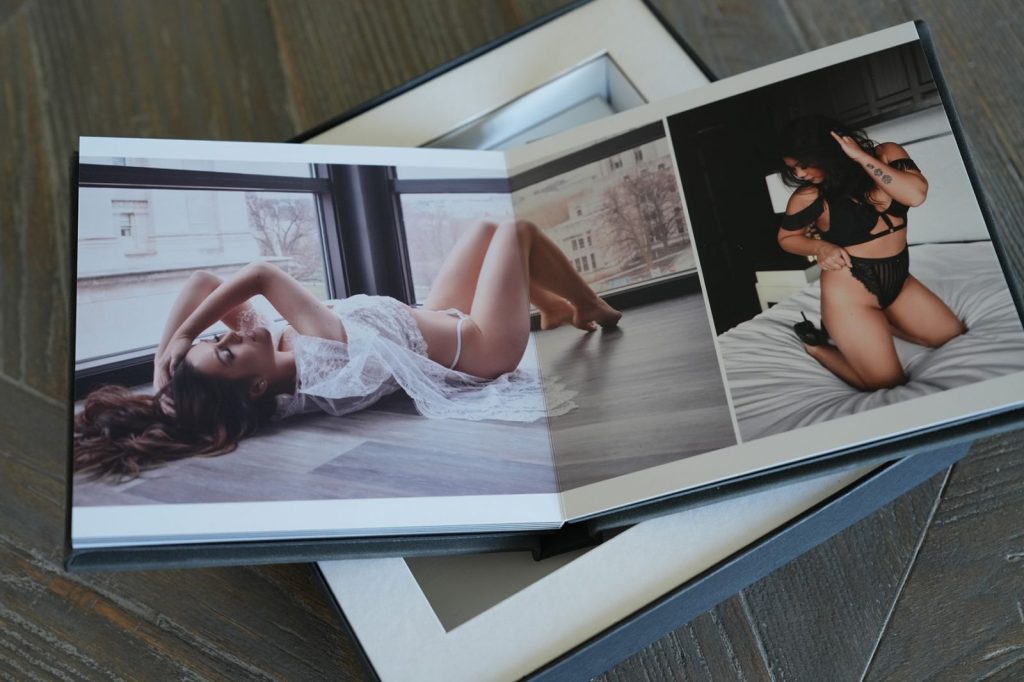 Our Layflat Albums are the epitome of classic elegance and contemporary design. Fully customizable, they allow you to curate your images in a way that reflects your boudoir experience The seamless layflat design ensures that each page effortlessly flows into the next, creating a stunning visual narrative. Crafted with meticulous attention to detail, these albums are our most sought-after product, designed to showcase your memories with sophistication and refinement, making each turn of the page an unforgettable experience.